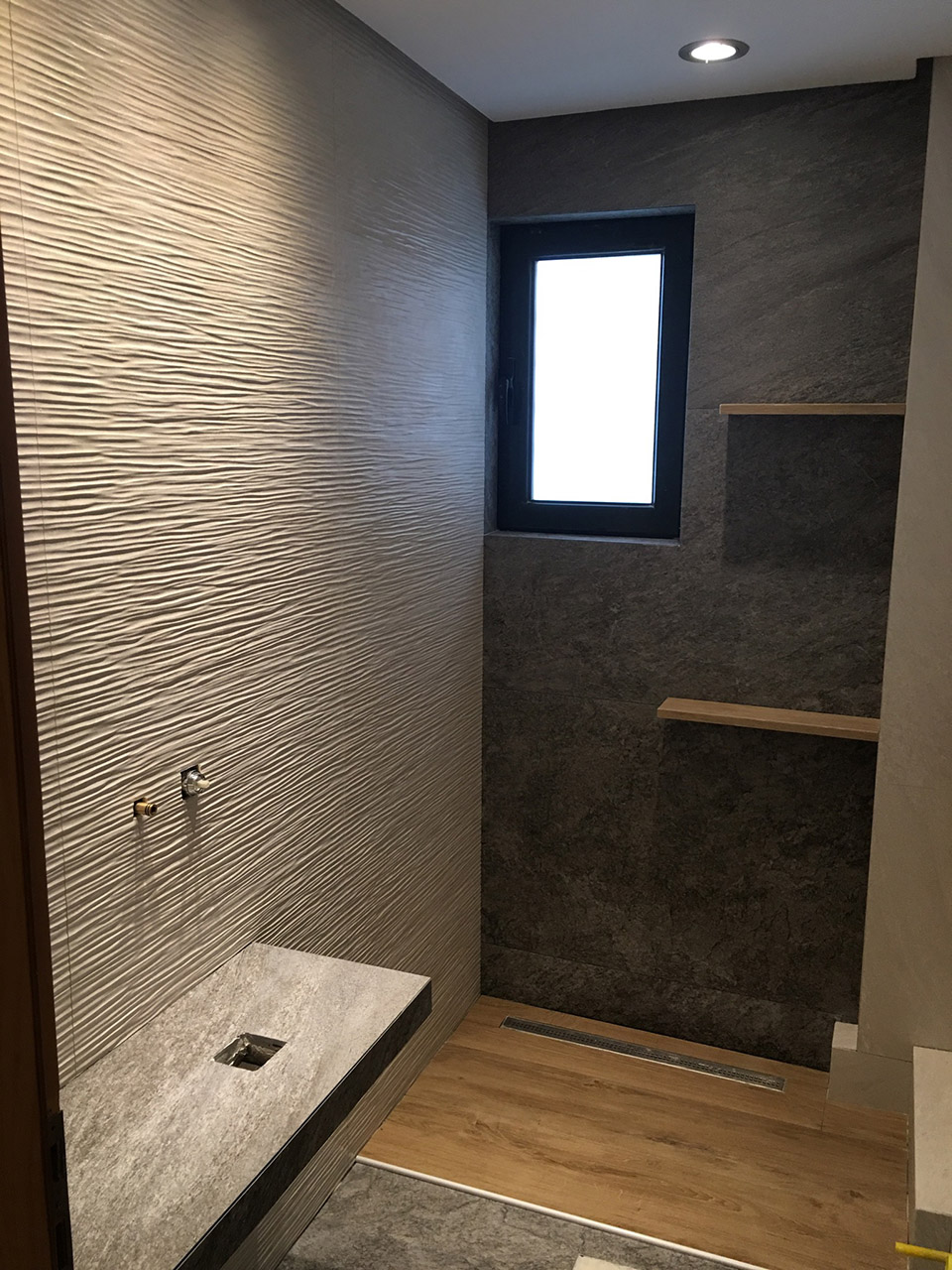 Ανακαίνιση μπάνιου με κατασκευή χτιστού πάγκου σε οικία στο Γέρακα.