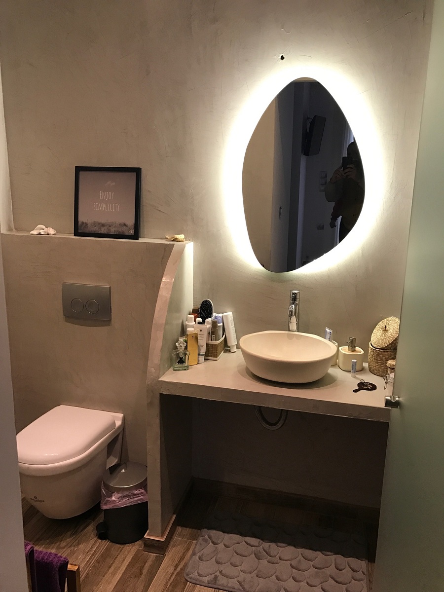 Η πατητή τσιμεντοκονία έχει γεννηθεί στις Κυκλάδες και είναι μια παραδοσιακή Ελληνική τεχνοτροπία που έχει αναβιώσει και έχει τελειοποιηθεί σαν τεχνική. Χρησιμοποιείται με ποικίλους τρόπους και τεχνοτροπίες δίνοντας ξεχωριστές υφές ( ανάγλυφη, λεία, ματ, γυαλιστερή, με νερά, υαλώδης ) και ζωντανές χρωματικές αποχρώσεις.