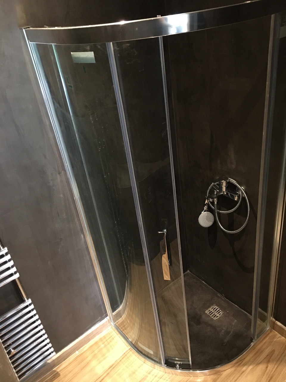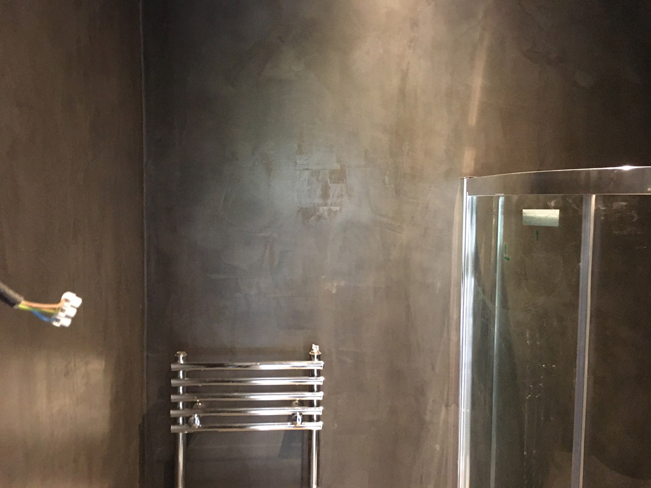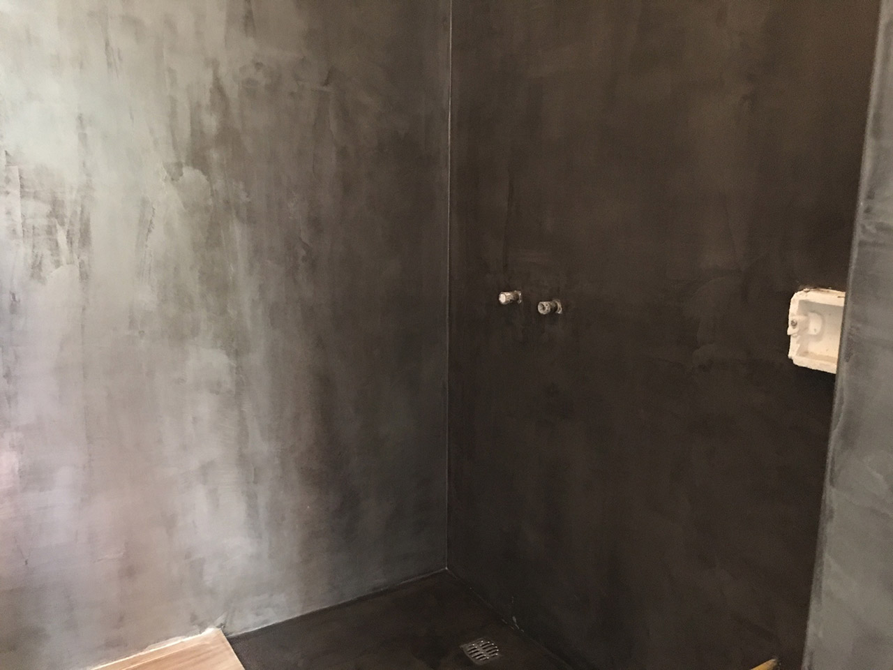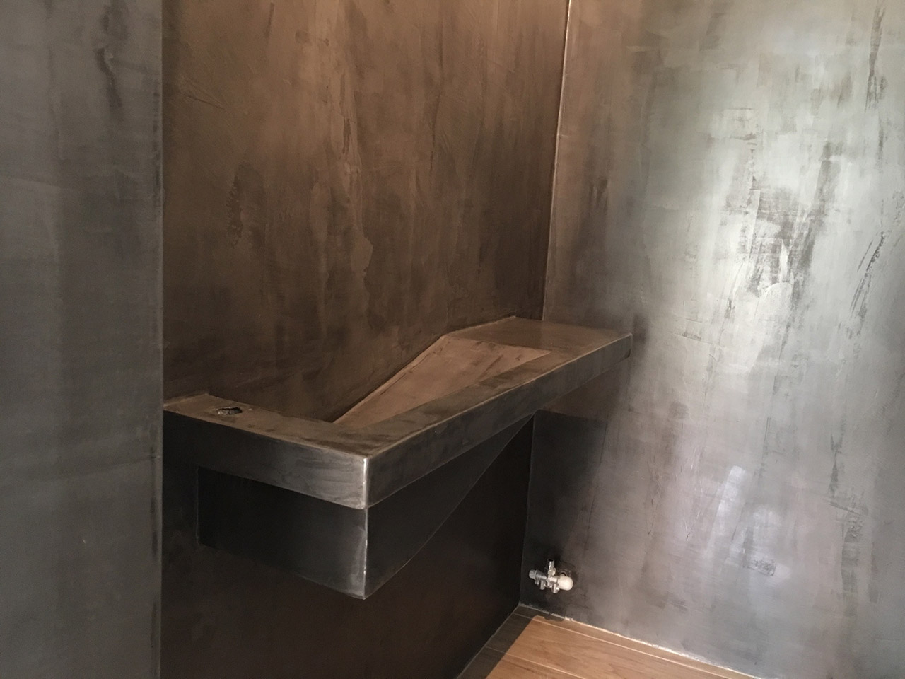 Ανακαίνιση  wc με εφαρμογή πατητής τσιμεντοκονίας και  κατασκευή χτιστού πάγκου με νιπτήρα σε κλίση,σε οικία στα Βριλήσσια.